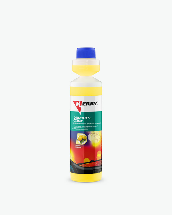 Омыватель стекол. Аромат лимона. Суперконцентрат. Содержимое флакона при смешивании с водой в соотношении 1:100 позволяет приготовить 25 литров летней стеклоомывающей жидкости. Омыватель стекол KERRY® KR-338 (Аромат лимона), благодаря содержанию комплекса поверхностно-активных добавок, быстро и эффективно удаляет дорожную грязь, масляные пятна, следы насекомых, птичий помёт, смолу растений. Обеспечивает идеальную чистоту фар, лобового и заднего стёкол автомобиля. Не оставляет радужной плёнки. Улучшает обзор. Предохраняет стёкла и щётки от абразивного износа. Безопасен для лакокрасочных покрытий, резиновых и пластиковых деталей.
