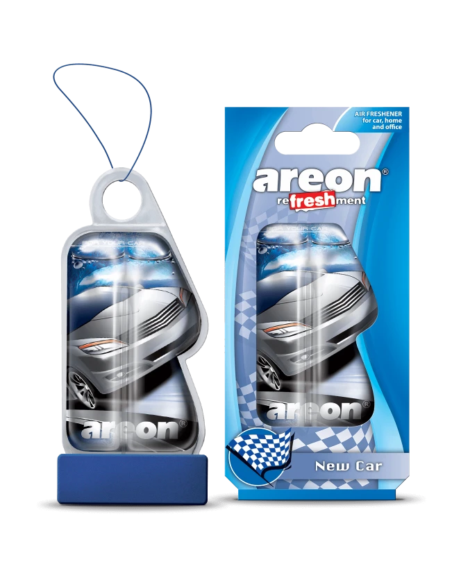 Ароматизатор подвесной Areon REFRESHMENT LIQUID New Car - Мягкое и уютное уханье кожи и табачных листьев для роскошного салона автомобиля.