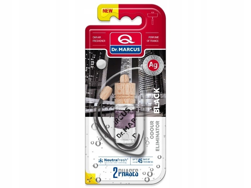 Ароматизатор подвесной Dr.Marcus ECOLO 2 Phases + Ag Black - С добавлением наноколлоидного серебра-это функциональный освежитель воздуха в стеклянной бутылке с деревянной пробкой.Благодаря инновационной технологии видны два слоя жидкости, каждый с определенной функцией.