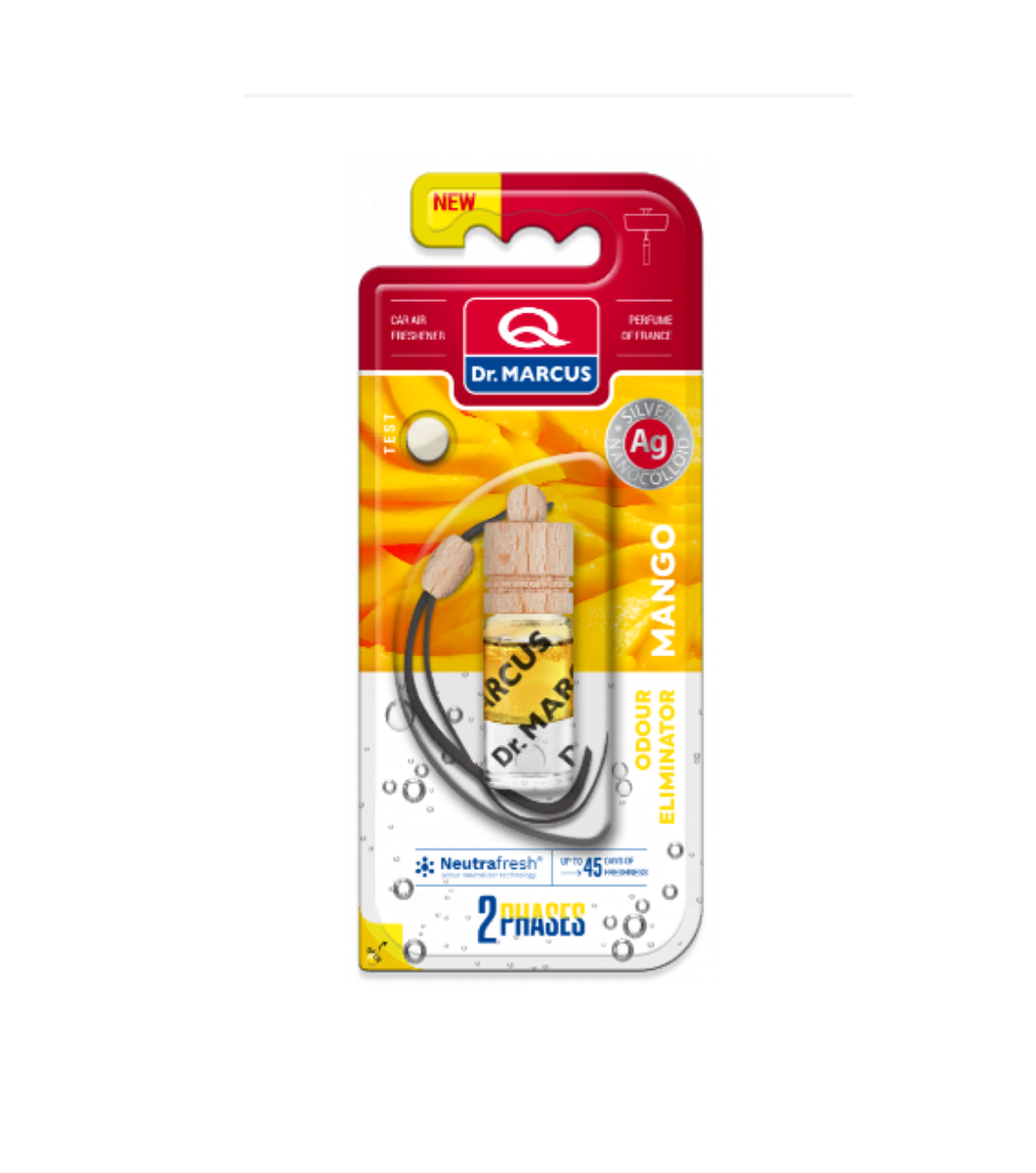 Ароматизатор подвесной Dr.Marcus ECOLO 2 Phases + Ag Mango - С добавлением наноколлоидного серебра-это функциональный освежитель воздуха в стеклянной бутылке с деревянной пробкой.Благодаря инновационной технологии видны два слоя жидкости, каждый с определенной функцией.