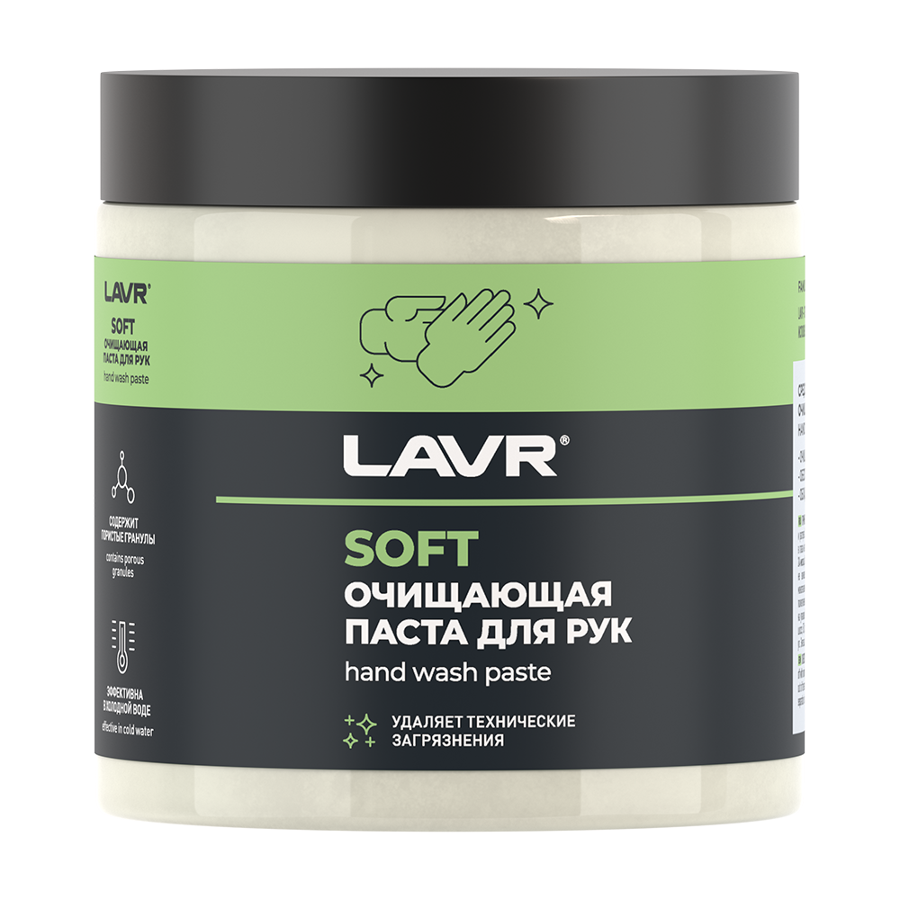 Паста удаляет сложные технические загрязнения рук. Пористые скраб-гранулы, входящие в состав, обеспечивают полное и глубокое очищение кожи, не травмируя ее. Состав эффективен против всех видов загрязнений, включая пятна от масла, смазок, битума, сажи, графита. Паста проста и удобна в применении, хорошо пенится, быстро смывается проточной водой.