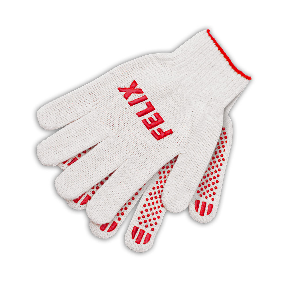 Перчатки FELIX обеспечивают усиленную защиту рук от механических воздействий и стираний. Цвет латексного нанесения: желто-красный. Красный цвет ПВХ нанесения. Каждая пара перчаток сшивается на запястье красной нитью