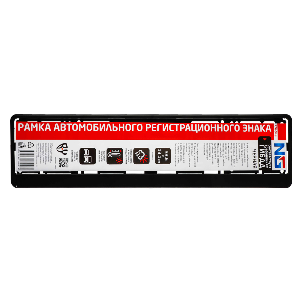 Рамка номерного знака New Galaxy 776-049. Материал, из которого сделана рамка, устойчив к внешним воздействиям и температурным перепадам.
