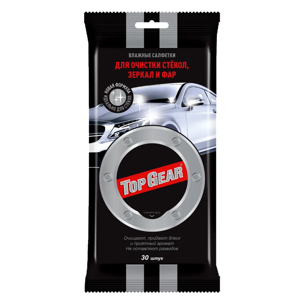 Влажные салфетки Top Gear для очистки стёкол, зеркал и фар из плотной крепированной бумаги