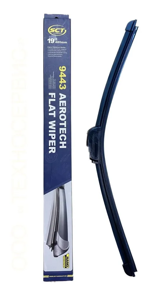 Щётка стеклоочистителя бескаркасная SCT 9443, со спойлером. Щётки стеклоочистителя отвечают самым высоким требованиям и мировым стандартам качества. Широкий выбор размеров позволяет подобрать щетки практически к любой модели легковых автомобилей и внедорожников.