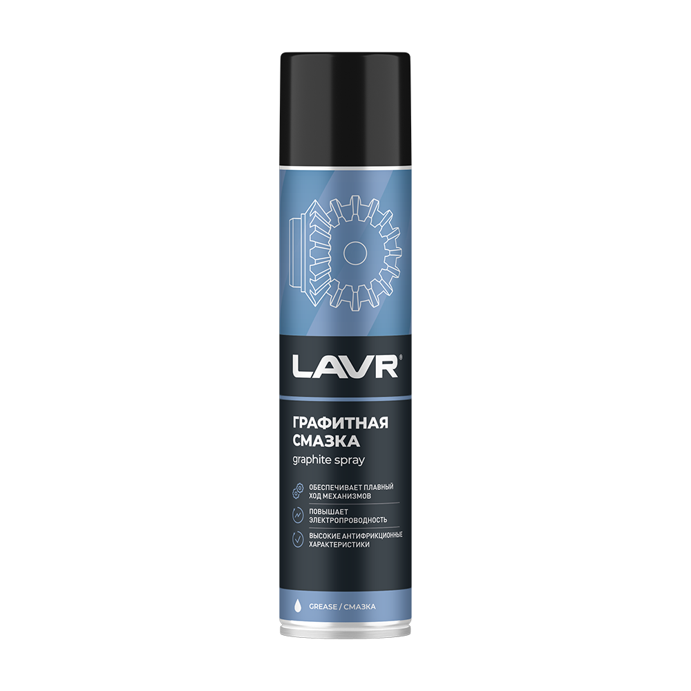 Проверенное средство для защиты механизмов от износа, трения и коррозии. Частицы графита заполняют и сглаживают микронеровности поверхности, предохраняют от граничного трения, тем самым увеличивая ресурс детали и предотвращая заедания. Мелкодисперсный графит сохраняется в узле дольше чем все остальные компоненты смазки, продолжая обеспечивать антифрикционные свойства. Состав применяется для обработки деталей автомобилей, тросов, резьбовых соединений, ходовых винтов, рессор, тихоходных подшипников, индустриального оборудования и других механизмов. Смазка предотвращает закисание и прикипание деталей. Создает электропроводное покрытие.