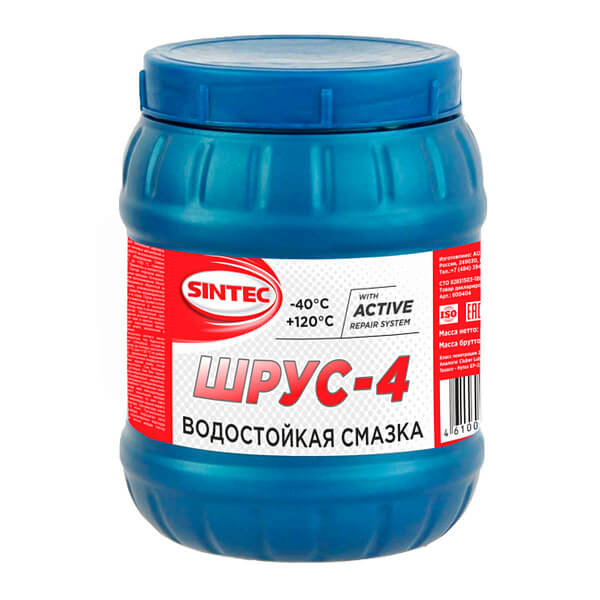 Семейство многофункциональных водостойких пластичных смазок с высокими эксплуатационными характеристиками. Смазка Sintec ШРУС-4 изготавливается путем загущения смеси высококачественных нефтяных масел литиевым мылом 12-гидроксистеариновой кислоты с добавлением пакетов присадок, обеспечивающих высокие антифрикционные, антикоррозионные и антиокислительные свойства. Содержит дисульфид молибдена МoS2 и наполнитель PTFE.