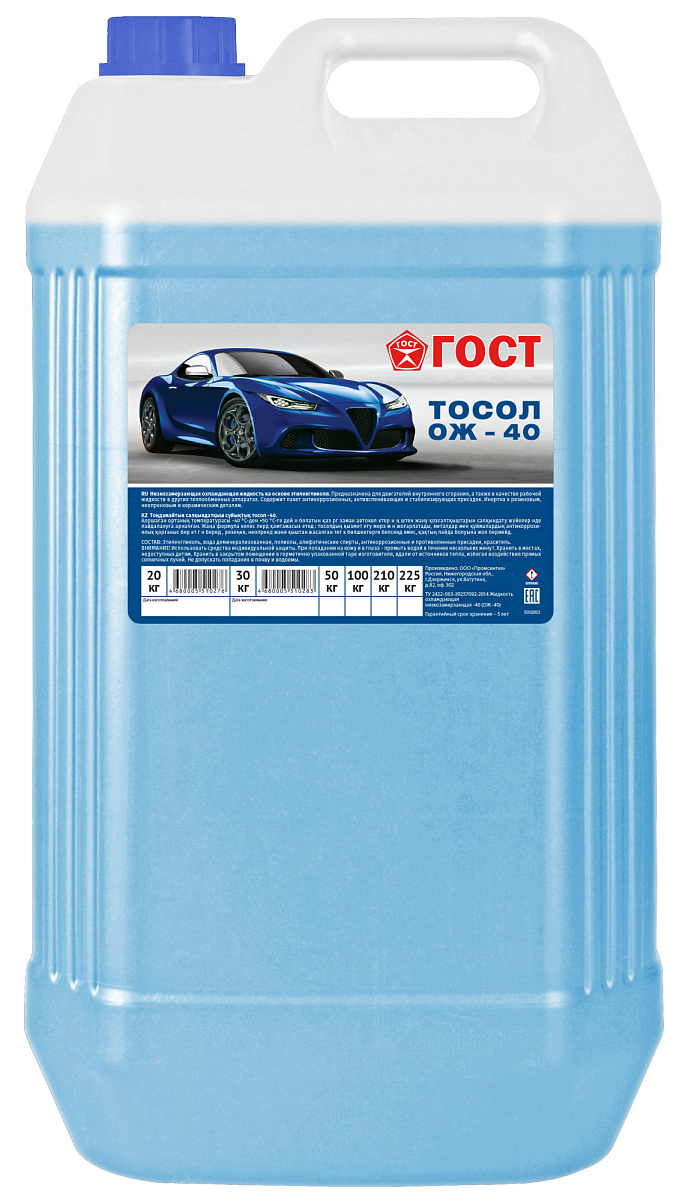 Тосол ГОСТ ОЖ-40 - это низкозамерзающая охлаждающая жидкость на основе этилгликоля с температурой начала кристаллизации не выше - 40°С, соответствующая ГОСТ 28084-89. Этот отечественный стандарт распространяется на охлаждающие низкозамерзающие жидкости.