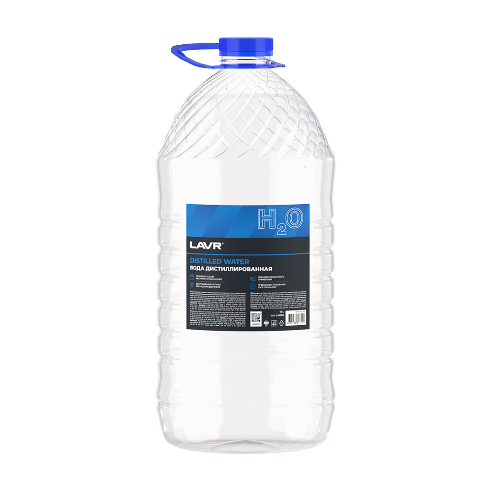 Дистиллированная вода высшей категории качества для обслуживания систем охлаждения ДВС и аккумуляторных батарей, разведения концентратов, использования в качестве омывающей жидкости. Вода изготовлена в соответствии с требованиями ГОСТ 6709-72.