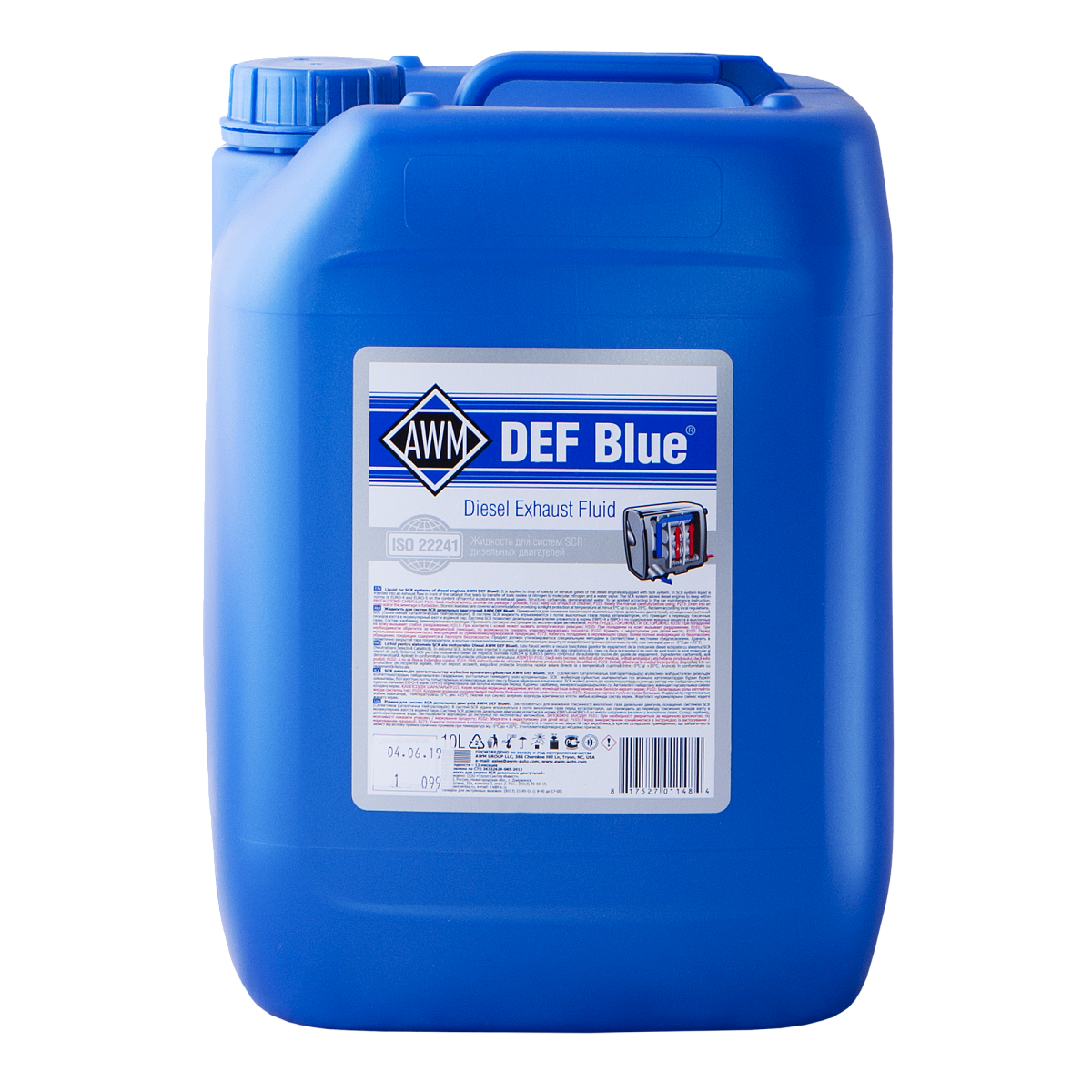 Жидкость для систем SCR дизельных двигателей AWM DEF BLUE представляет собой раствор мочевины высшей степени очистки (32.5%) в деминерализованной воде (67.5%). Является полным аналогом раствора мочевины AUS 32, в том числе выпускаемой под маркой AdBlue®, зарегистрированной немецкой ассоциацией автопроизводителей VDA. Производится в строгом соответствии с промышленными стандартами DIN 70070 и ISO 22241, а также требованиями OEM спецификаций.